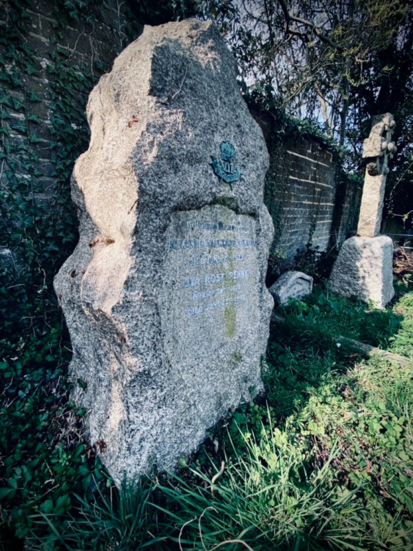 Whilst we can now only speculate as to why Alexander settled in Berkhamsted, he remains here today buried in Rectory Lane cemetery. The gravestone is not only unique within the cemetery in being adorned with the badge of an Indian Army Regiment, but the design of the stone itself is also unusual. Rather than a conventional gravestone, or cross, it takes the form of a naturally shaped rock on which Alexander and Eva’s names and dates of death are displayed, surmounted by the regimental badge of the 7th Bengal Lancers. This gravestone was supplied by G. Maile & Son Ltd, which was based on the Euston Road in London, the business being that of “Church furnisher, and dates of death sculptor.”