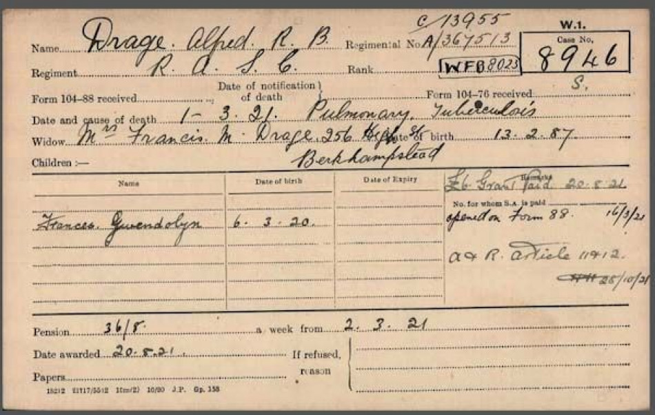 Staff Sgt. Major Drage EFC, NACB, NAAFI, France, Italy, East died at the Royal Victoria Hospital, Netley