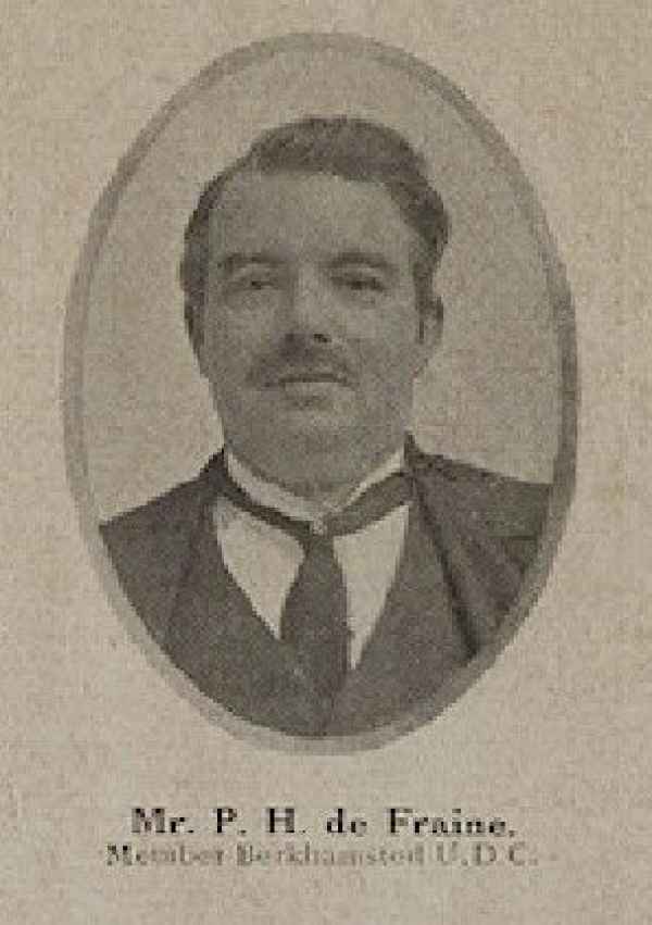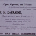Philip’s grandfather, William De Fraine, had been born in Aylesbury, but he moved to Berkhamsted where, by 1839, he set up in business as a perfumier and hairdresser. His home and hairdresser’s shop was located on Berkhamsted’s High Street, one of two cottages situated between the Swan and Crown inns. Philip’s father, Charles, continued the business.