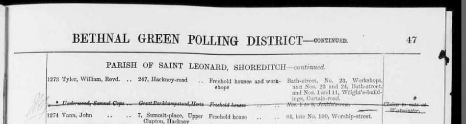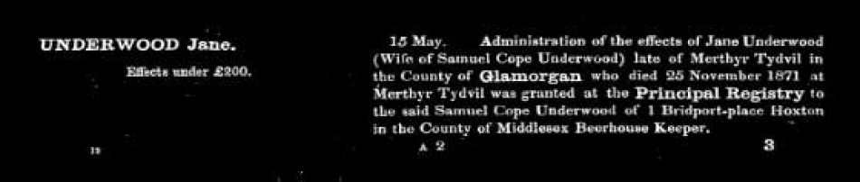 Wife of Samuel Underwood. Interred at Brompton Cemetery