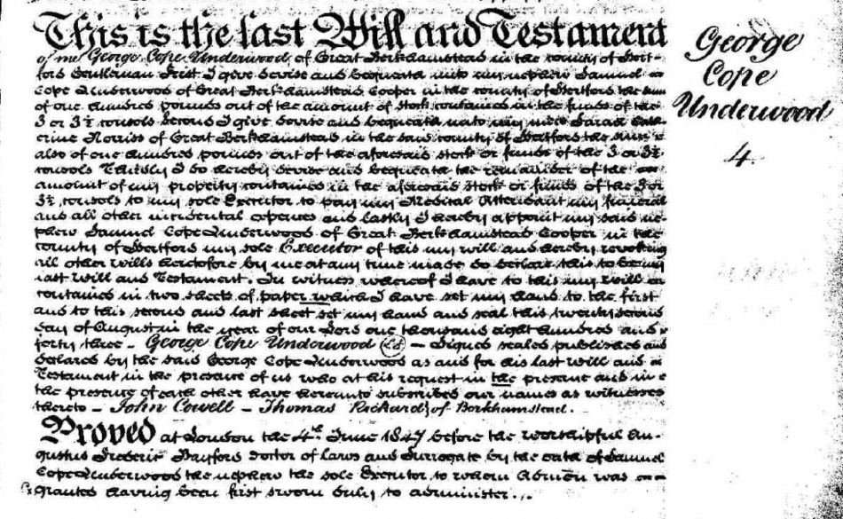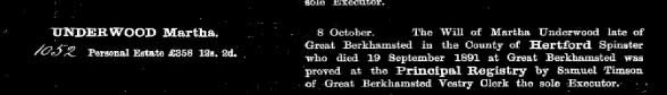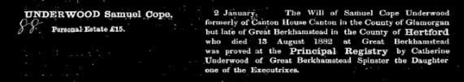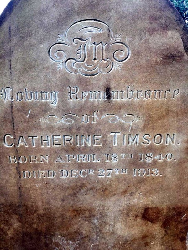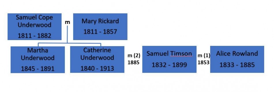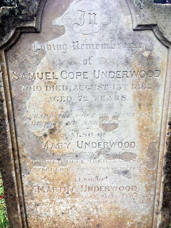 The Underwood and Timson family share a memorial – with an inscription either side. The link between Samuel Cope Underwood and the Timson family is explained in the records of Samuel’s daughter, Martha.